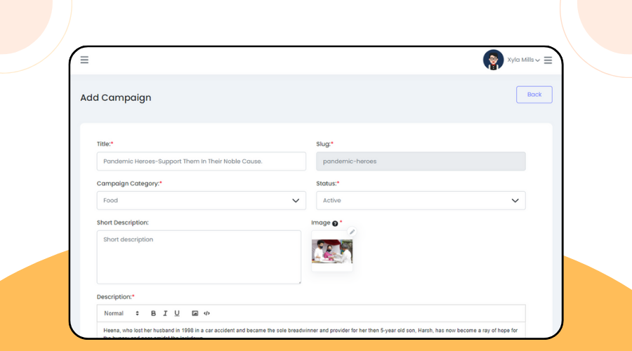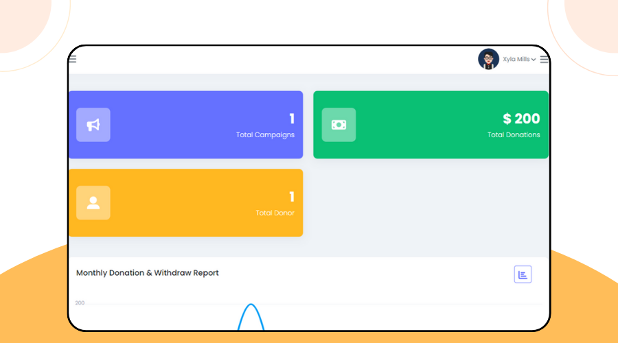 • لوحة معلومات شاملة: عرض إحصائيات مثل عدد الحملات والتبرعات والمستخدمين.