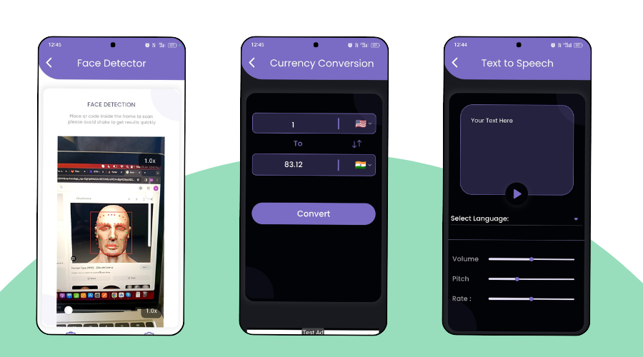 - التعرف على الوجه: يدعم التطبيق ميزة التعرف على الوجه من الصور الملتقطة من الكاميرا، المختارة من المعرض، أو من مجلد الأصول.